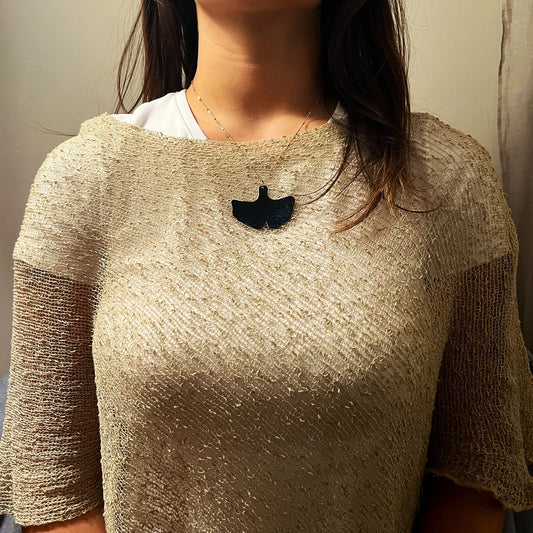 Pendente Ginkgo Biloba in rame ossidato ACQUA